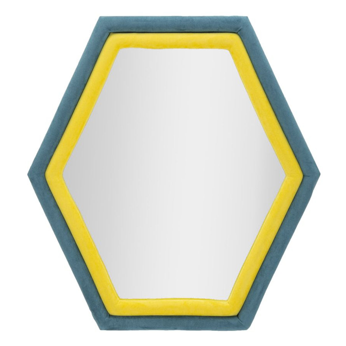 Hexagonal Wall Mirror with Fabric-Covered Wooden Frame