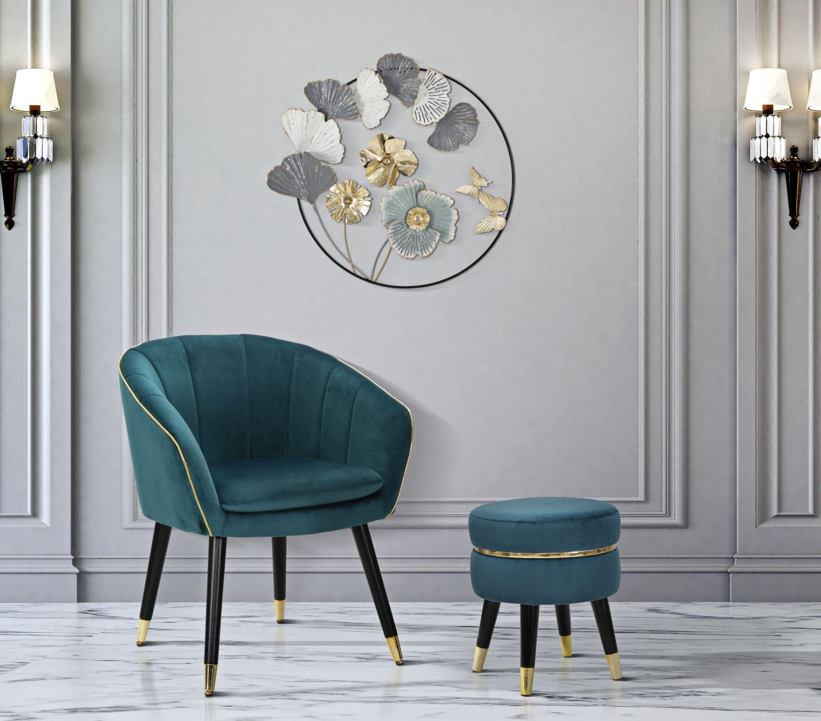 Teal Velvet Wooden Stool – Hollywood Diva Glamour
