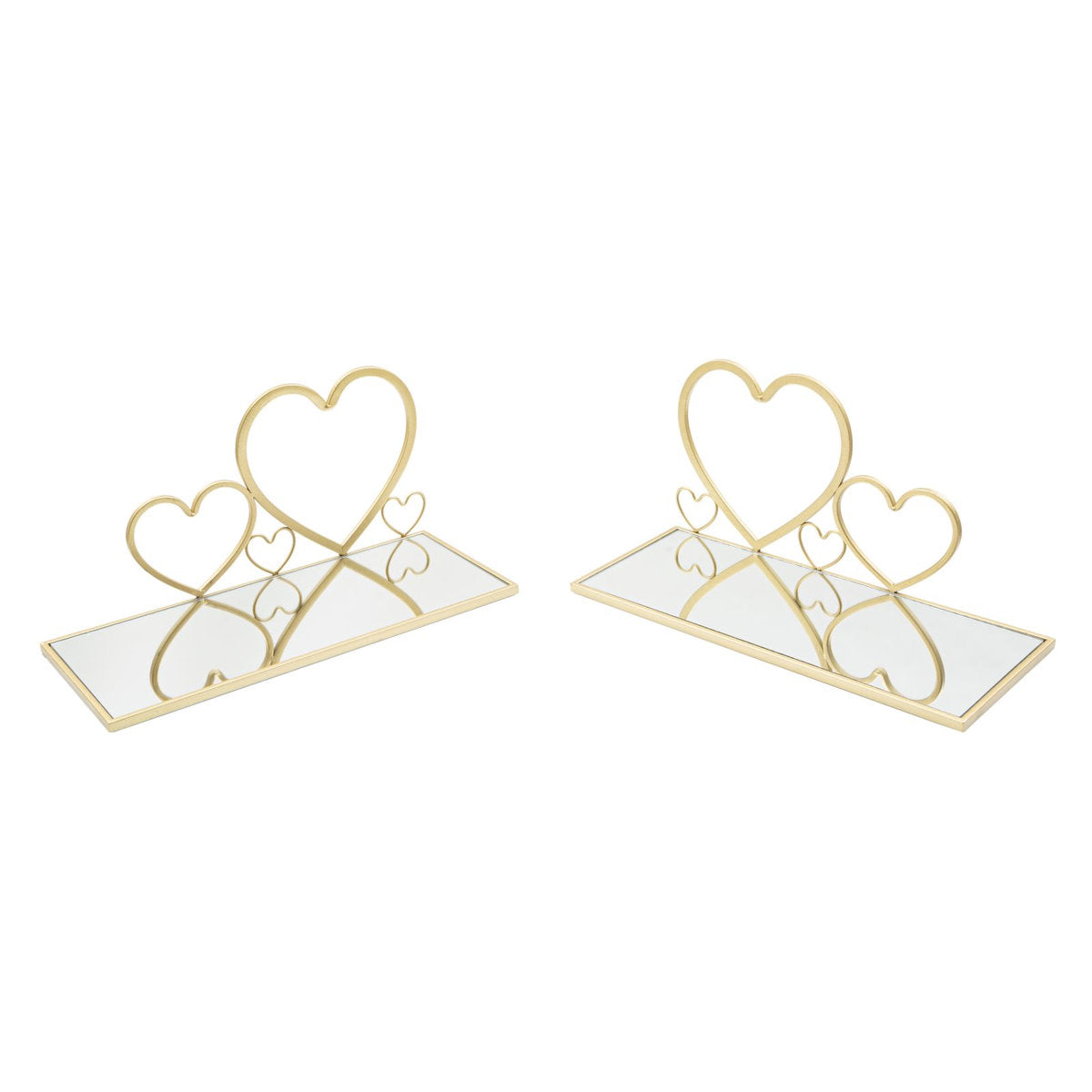 Pair of Golden Metal Wall Shelves with Mirrored Glass & Heart Decor