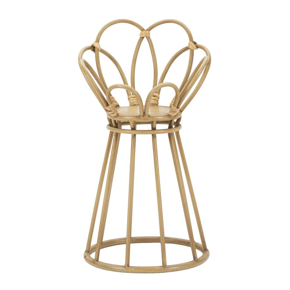 Flower-Shaped Round Metal Vase Holder with Rattan Finish
