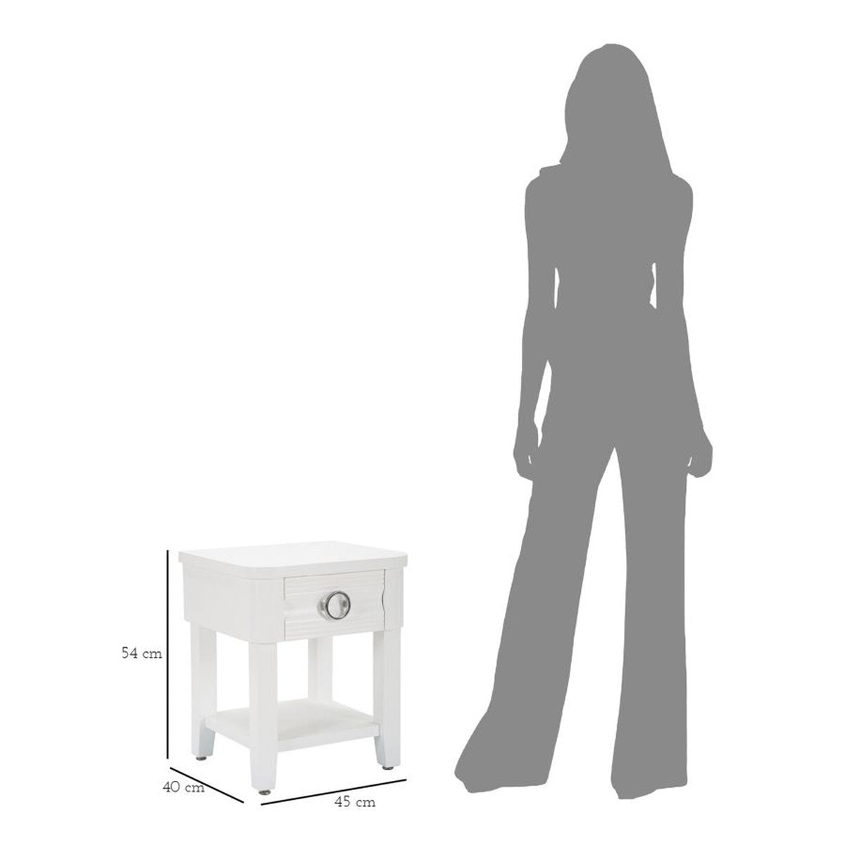 Bedside Table with Drawer & Shelf – Minimalist White Design