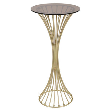 Golden Metal Round Table with Elegant Spheres & Smoked Glass