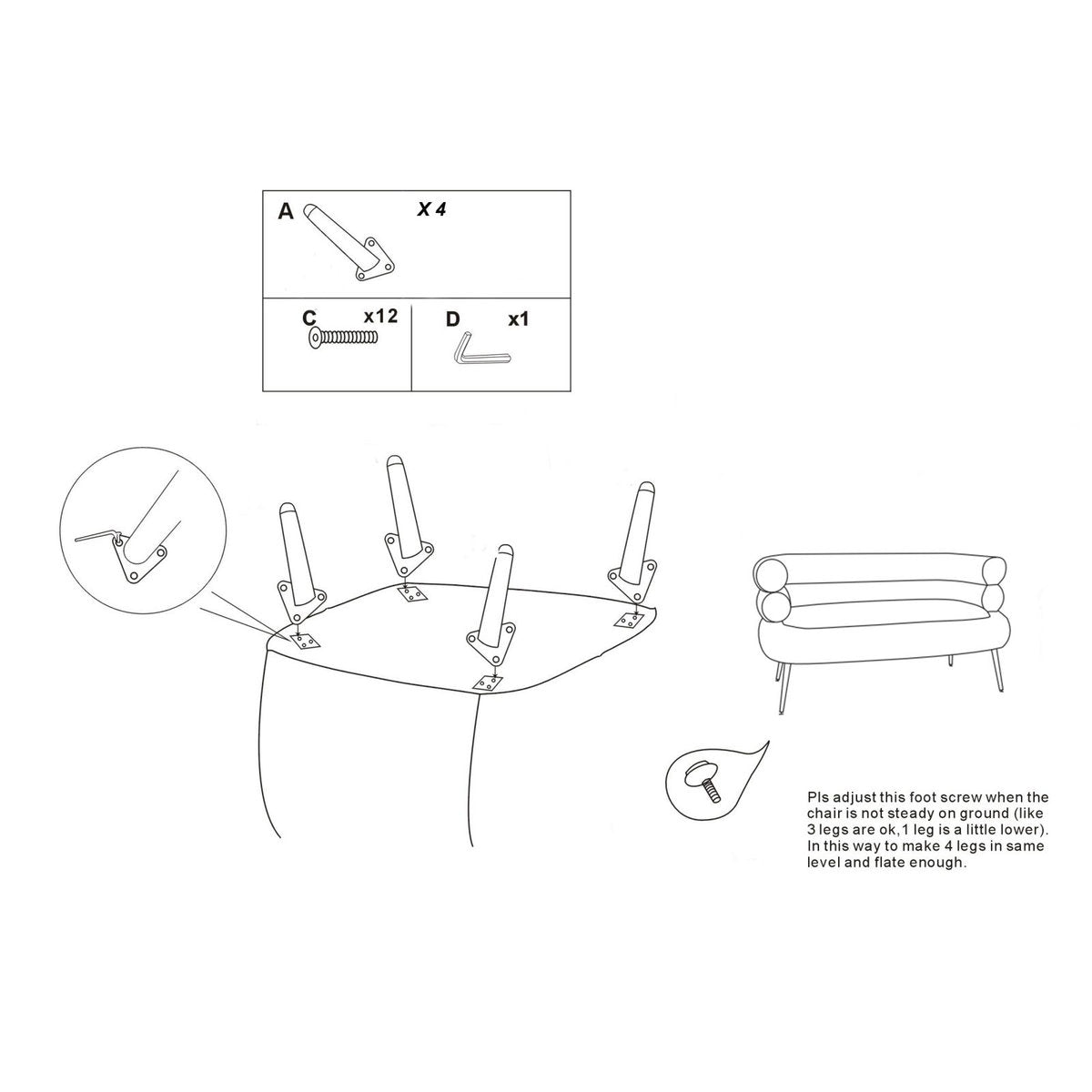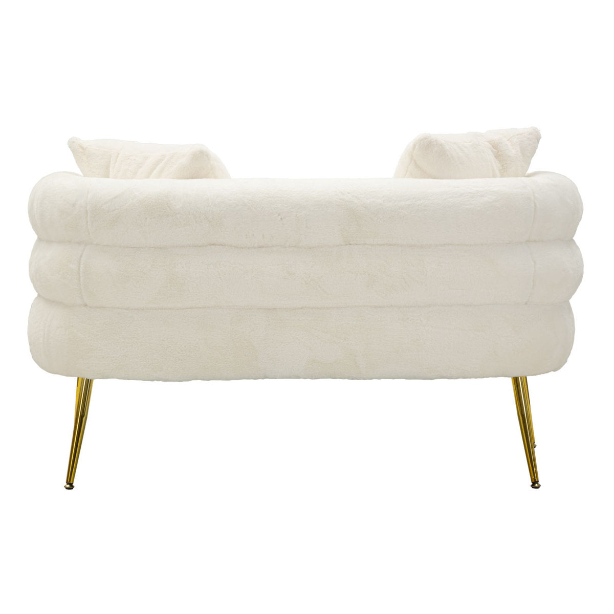 Two-Seater White Faux Fur Sofa with Golden Legs
