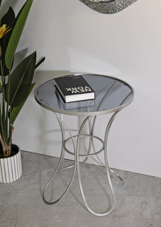 Contemporary Silver Metal Table with Tempered Glass Top