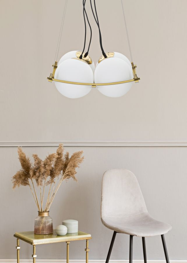 Golden Ceiling Lamp with Geometric Design and 4 Glass Spheres