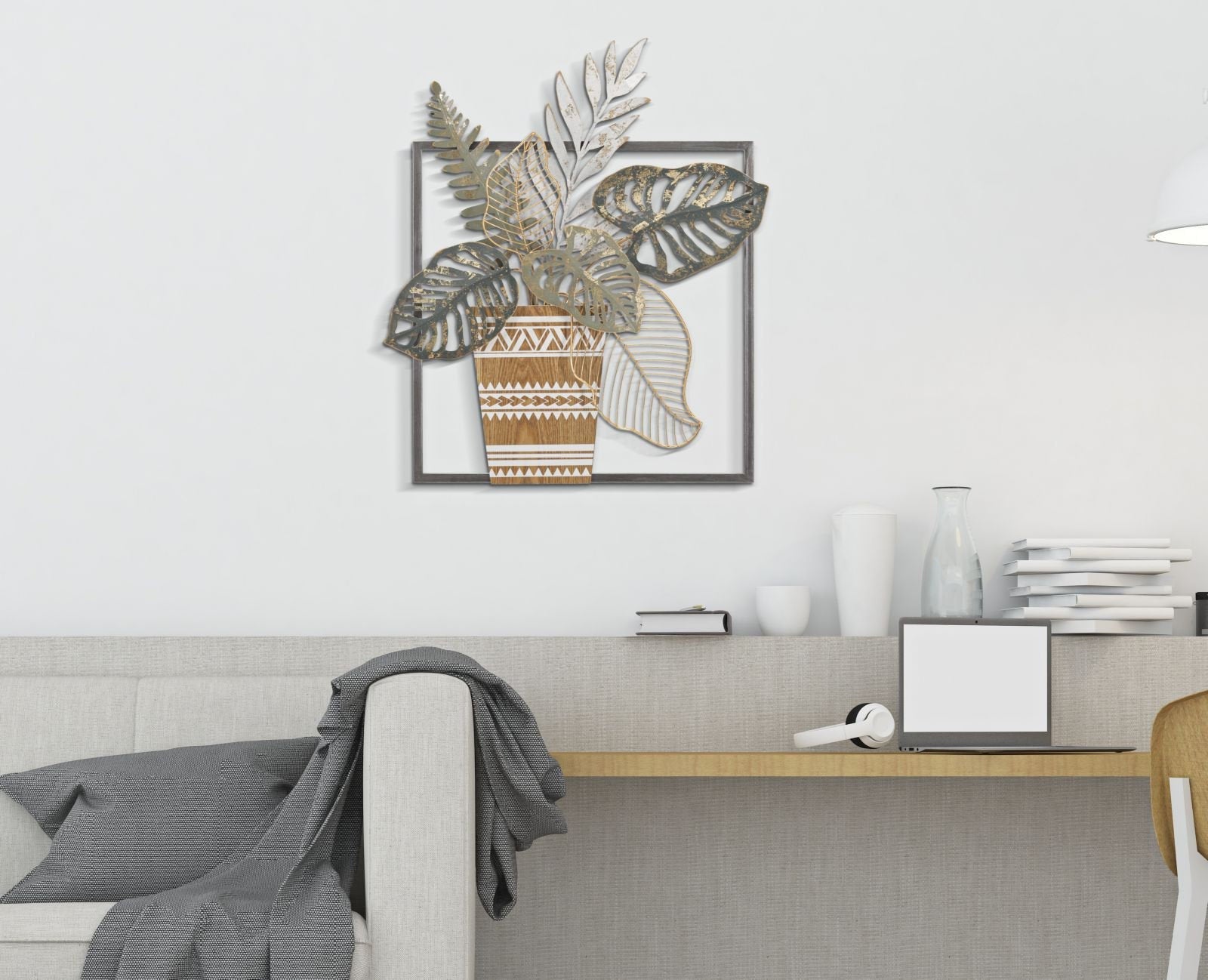 3D Metal Vase with Leaves Wall Panel