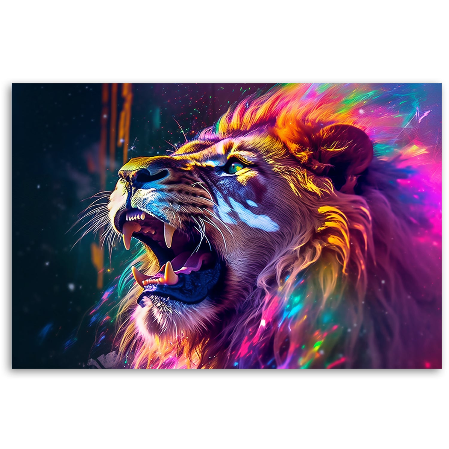 Deco panel print, Lion Roar Neon Abstraction