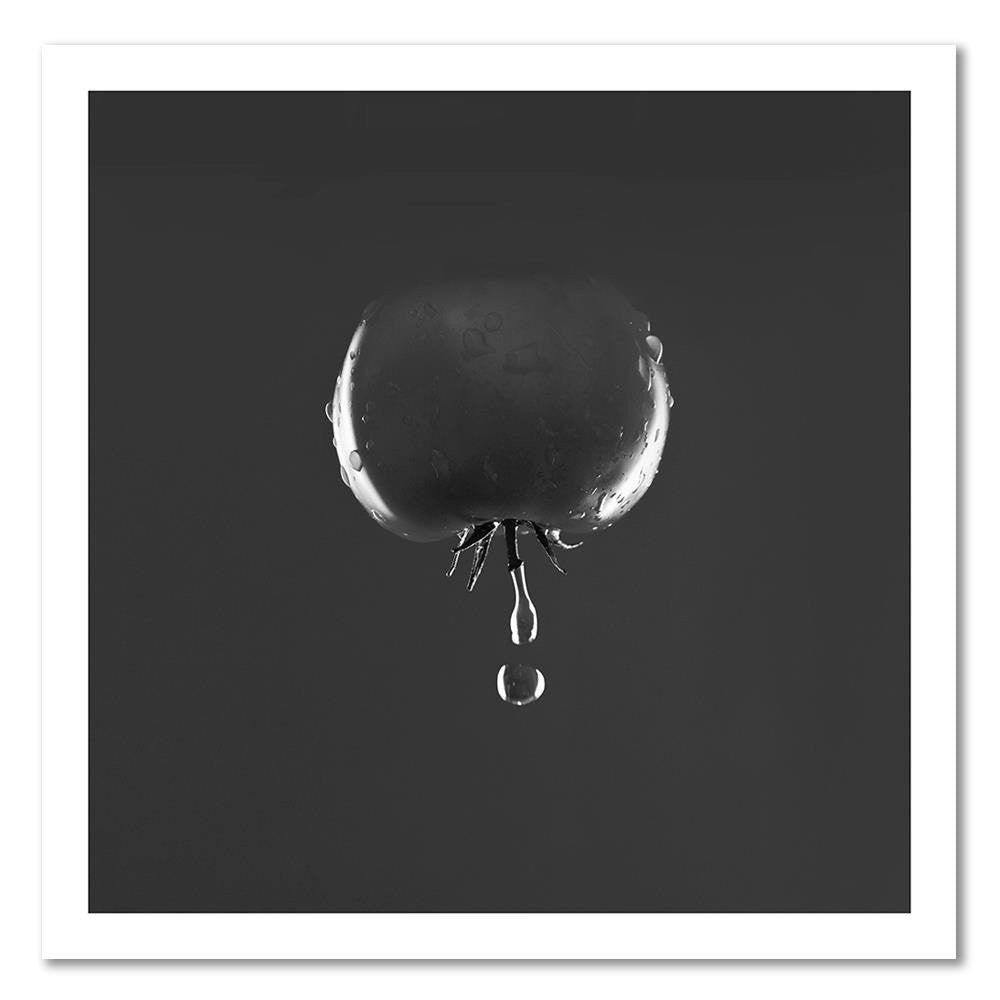 Deco panel print, Tomato and water droplets - black and white