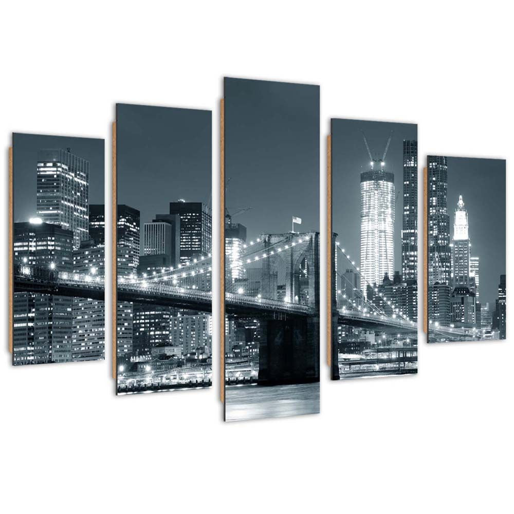 Five piece picture deco panel, Brooklyn bridge black and white