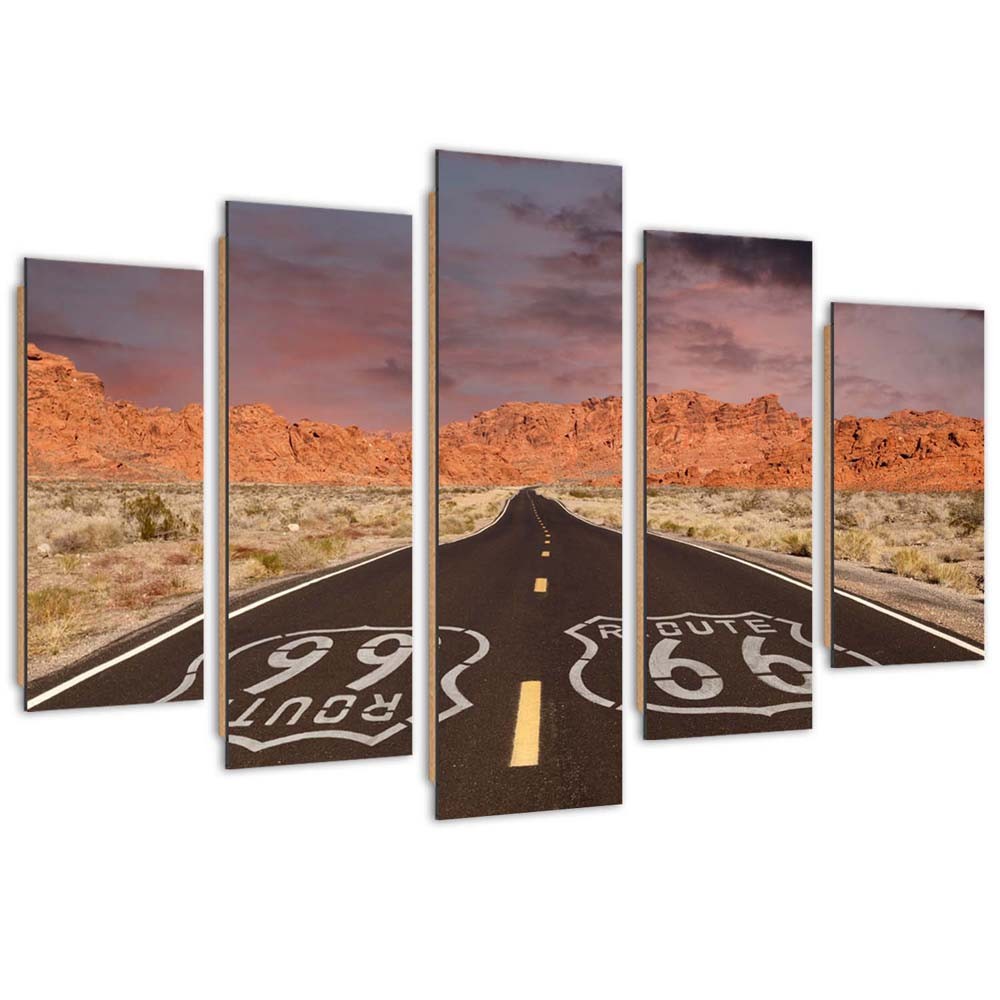 Five piece picture deco panel, Route 66 road