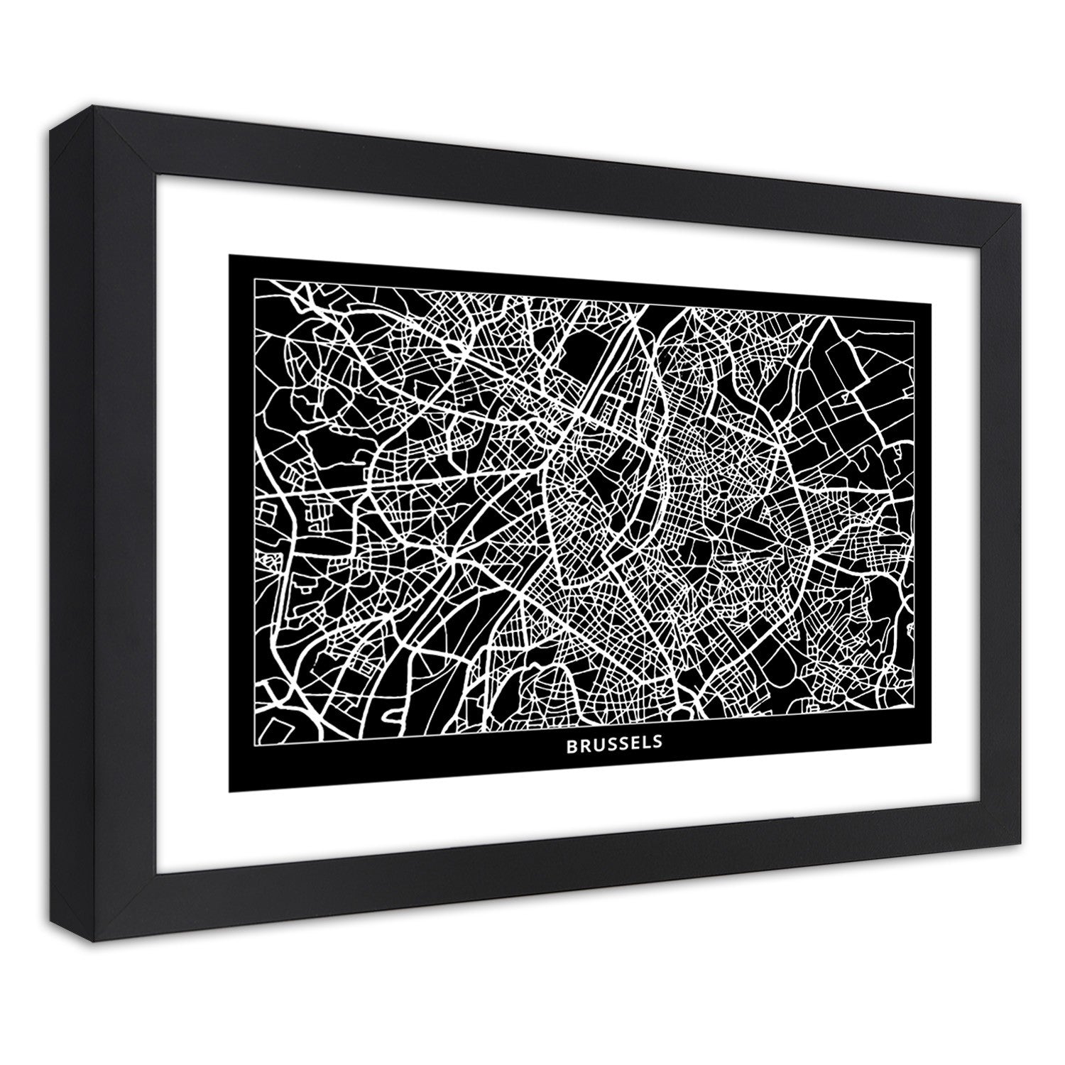 Picture in black frame, City plan brussels