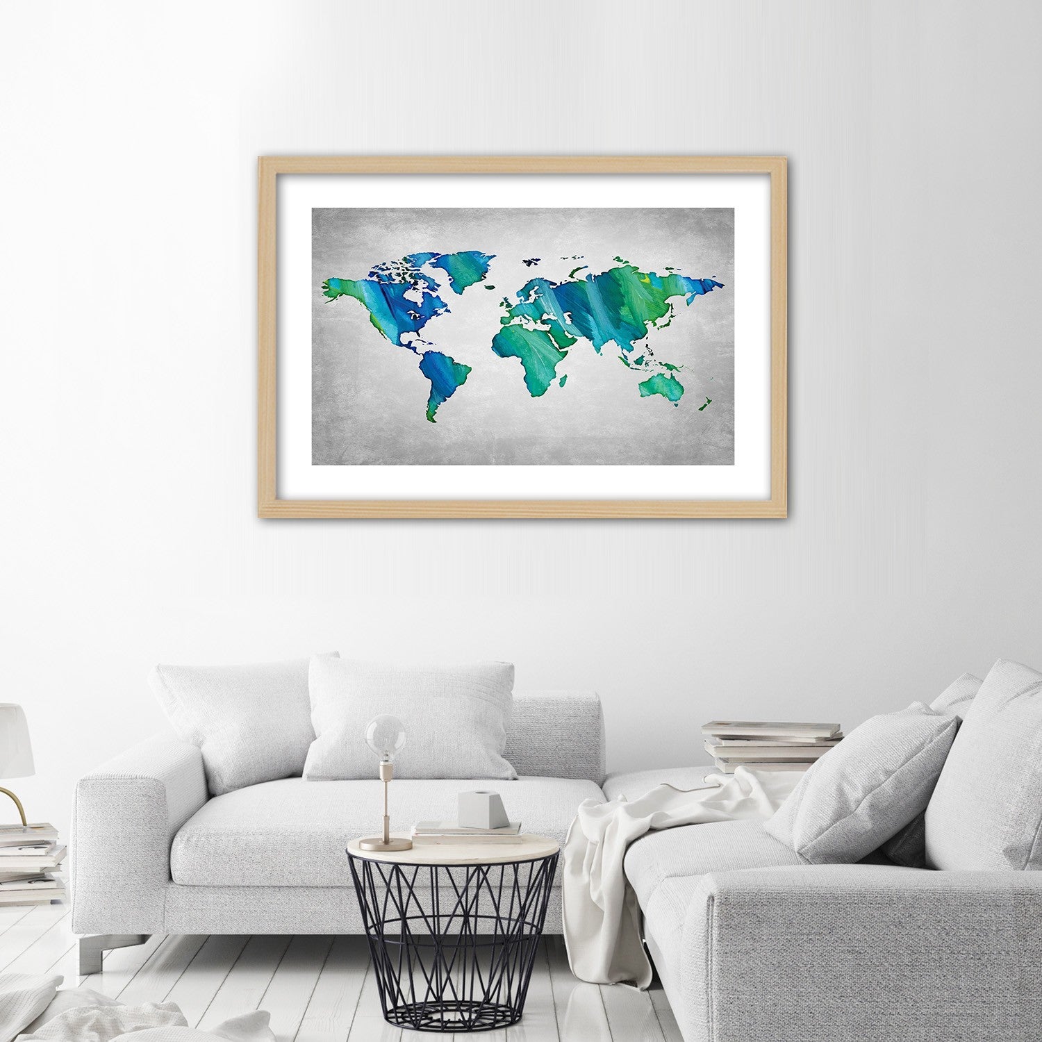 Picture in natural frame, Coloured world map on concrete