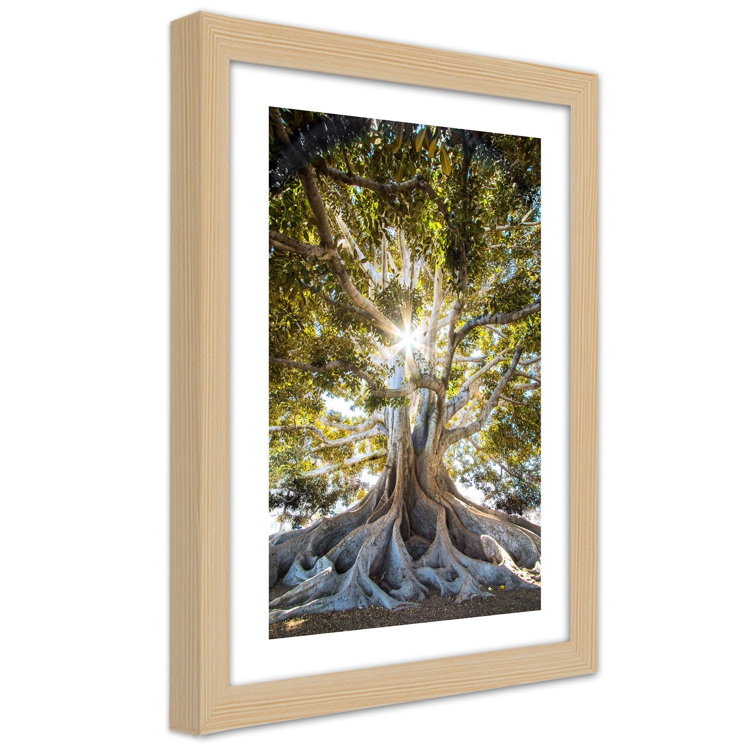 Picture in natural frame, Large exotic tree