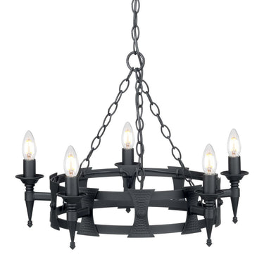 Chandelier Elstead Lighting (SAX5-BLK) Saxon wrought iron E14 5L