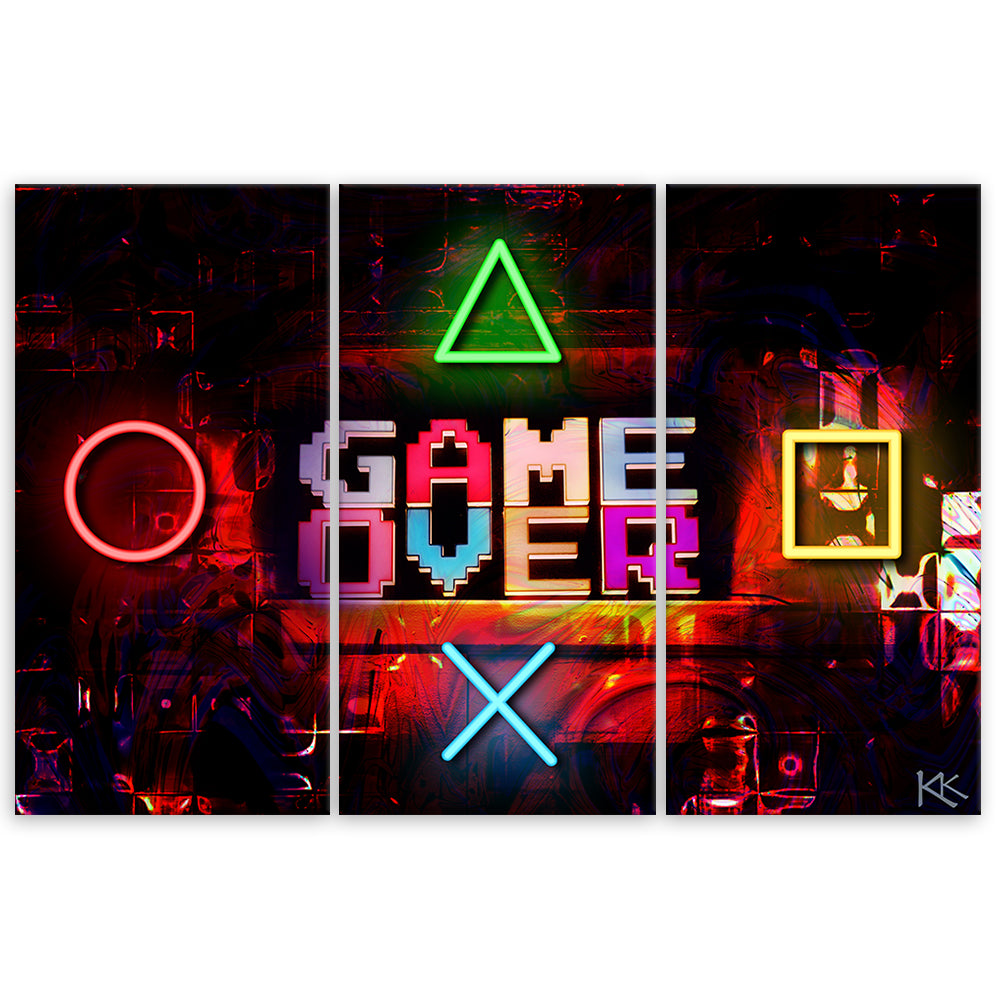 Three piece picture canvas print, Game Over for the gamer