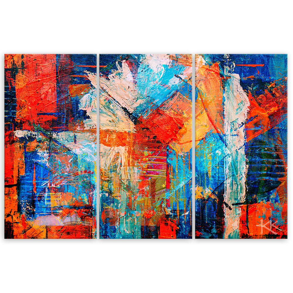 Three piece picture canvas print, Orange abstract hand painted