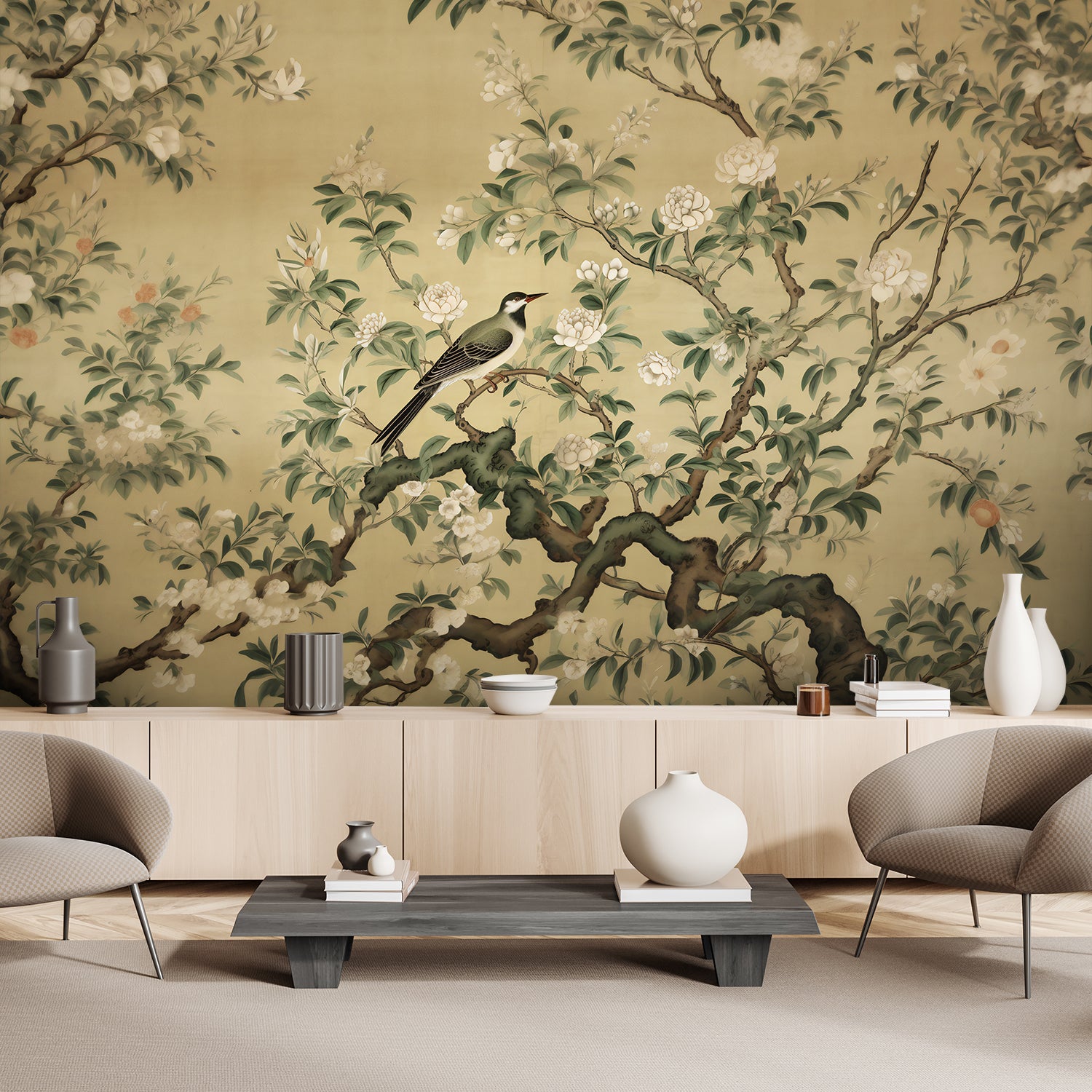 Wallpaper, Bird Abstract Chinoiserie